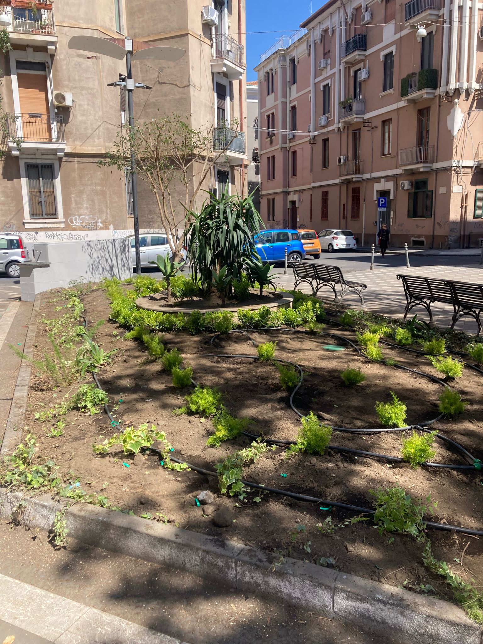 Le quattro fontane, precedentemente in stato di abbandono, sono state trasformate in fioriere ornamentali; le aiuole sono state ripopolate con nuove essenze vegetali, è stato ripristinato l’impianto di irrigazione e sono stati installati cestini per la raccolta dei rifiuti. Un’accurata operazione di pulizia straordinaria ha inoltre restituito decoro all’intera area.