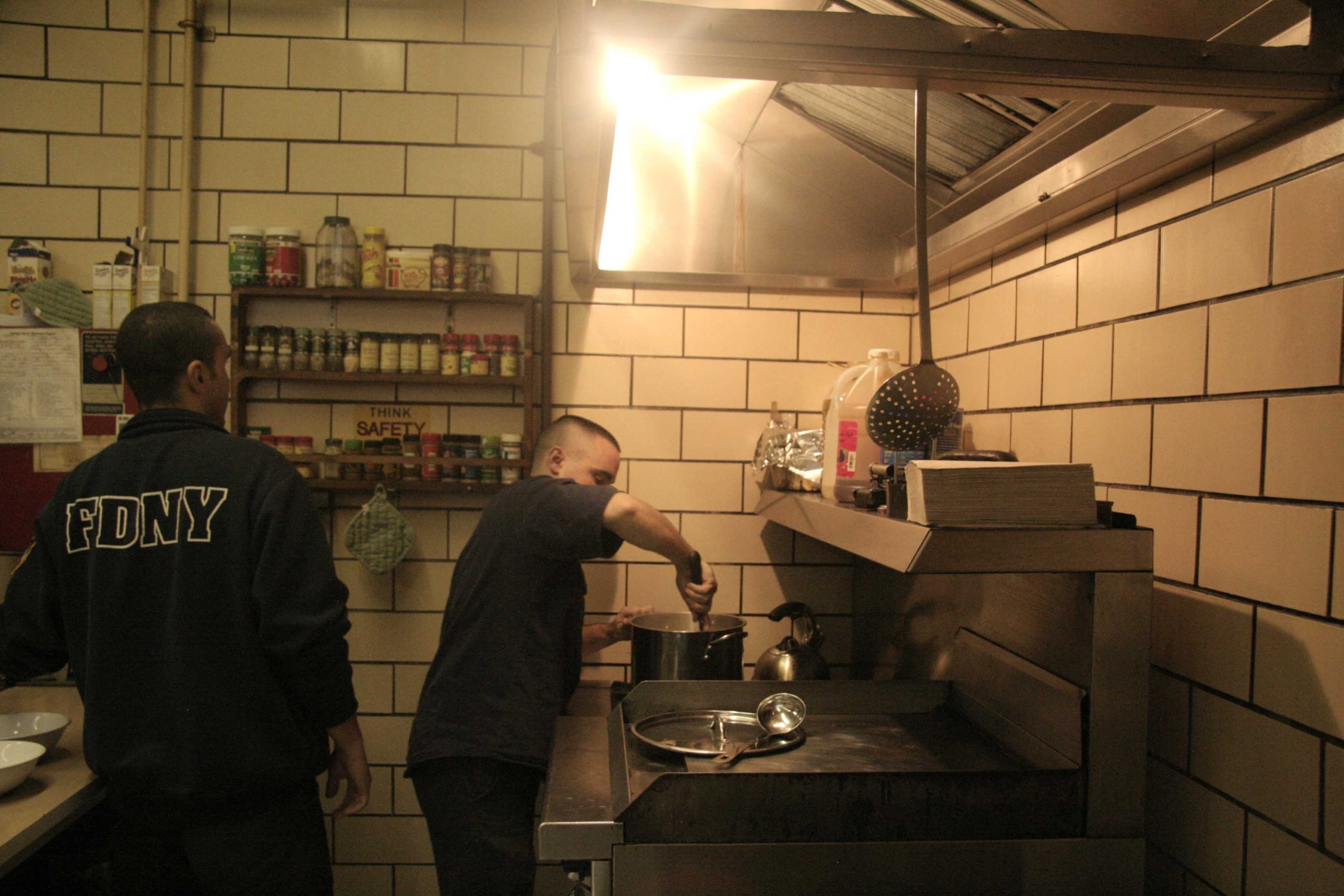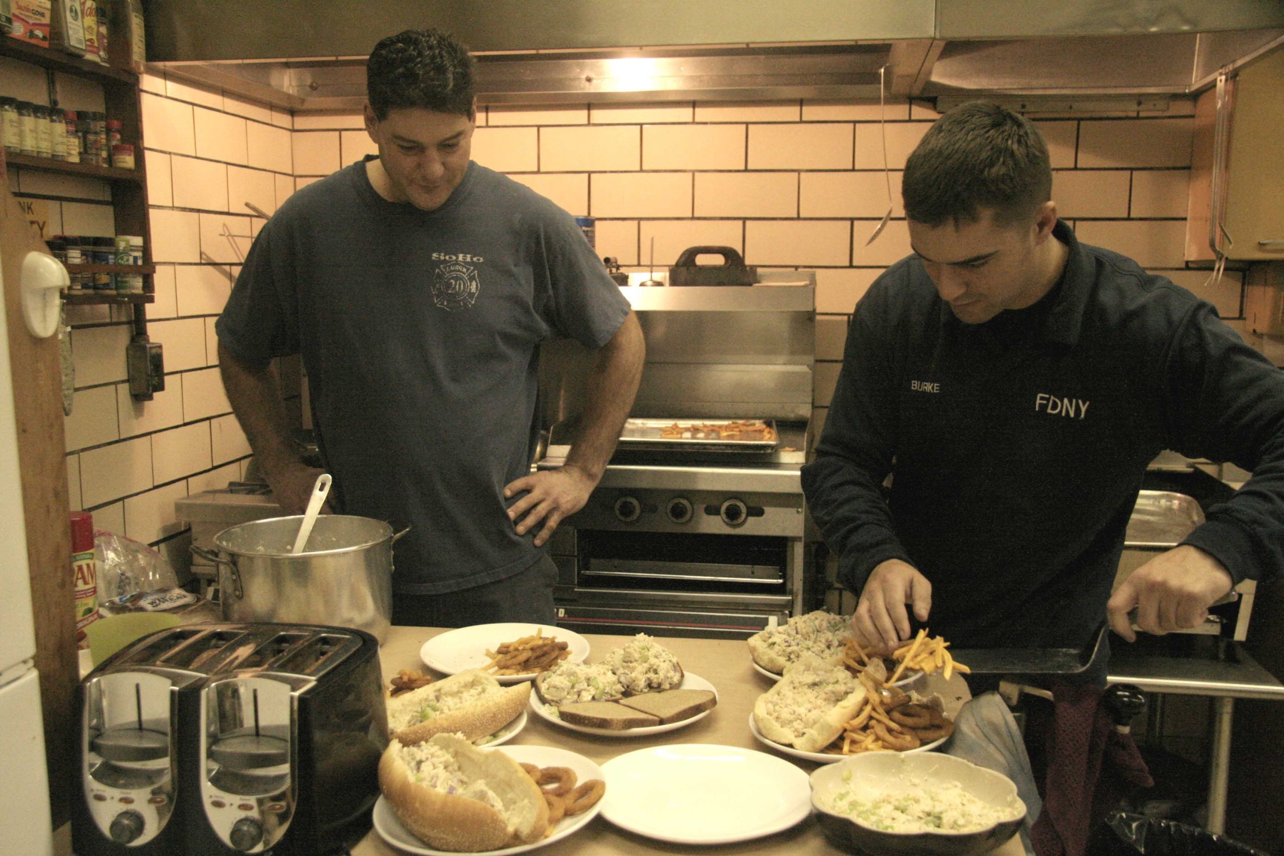 I pompieri di New York sono noti per essere ottimi cuochi. Molti di loro hanno scritto libri di cucina. Molti sono italo-americani e irlandesi-americani, una sorta di tradizione del comparto. Il corpo dei vigili del fuoco è infatti nato e cresciuto grazie agli immigrati irlandesi e italiani. In una foto scattata di spalle, i cognomi dei ragazzi stampati sulle giacche rivelano le loro radici.