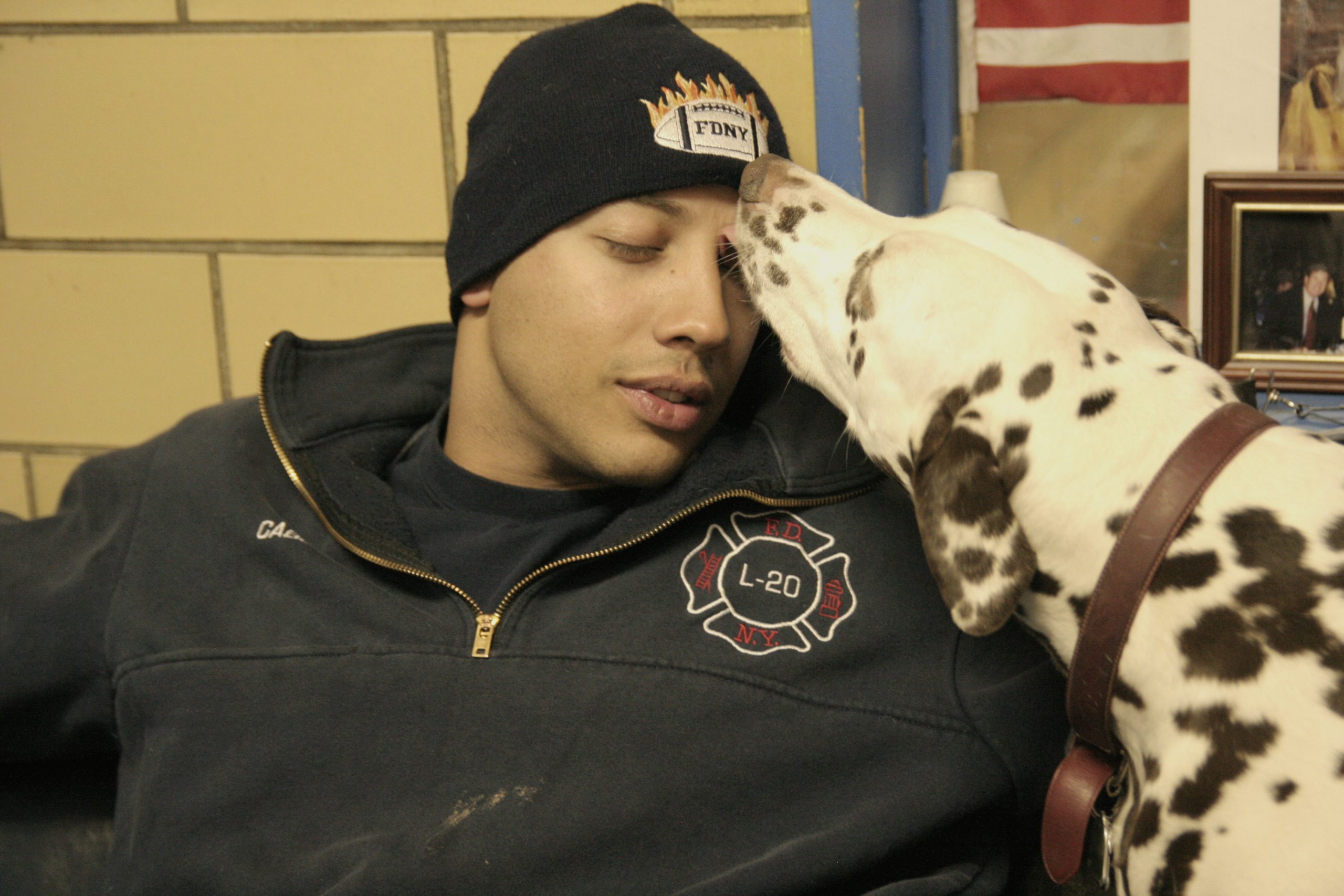 Nella caserma assieme ai pompieri di Iorio c’era anche Twenty, una cagnolina di razza dalmata che qualche anno prima due sceriffi di Rochester avevano regalato ai ragazzi della Ladder 20 per tirarli su di morale. “Tewnty ci ha aiutato molto”, mi confessò Gary, “è una piccola celebrità locale. Viene con noi sull’autobotte, mette il muso fuori dal finestrino e abbaia quando siamo in uscita di emergenza”. Twenty se ne è “andata” nel 2016, lasciando la caserma nello sconforto. Gary lo ha annunciato quattro anni fa sulla pagina Facebook del corpo pompieri di New York (link più sotto).