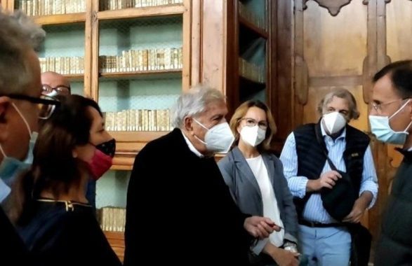Il maestro Taviani, nel ringraziare per l’ospitalità, ha messo in risalto il proprio amore per la Sicilia, condiviso con il fratello Vittorio, scomparso nel 2018: “In Sicilia abbiamo girato un documentario negli anni ’50 – ha sottolineato- Siamo stati qui un mese, abbiamo scoperto mondi inaspettati e quando abbiamo deciso di fare il nostro primo film, che fu quindi l’esordio, abbiamo detto: lo facciamo in Sicilia. Io dunque sono toscano ma sono anche siciliano”. Nell’Isola Paolo e Vittorio Taviani avevano inoltre girato “Kaos” (1984) e “Tu ridi” (1998).Riguardo in particolare alla biblioteca del complesso benedettino, sul libro d’onore il regista ha scritto: “E’ di una bellezza commovente questa biblioteca. Spero che le immagini del film le rendano il giusto omaggio”.“Leonora Addio”, regia e sceneggiatura di Paolo Taviani, annovera tra gli attori Fabrizio Ferracane e Massimo Popolizio. Tutto il cast è di prim’ordine. Le musiche sono di Nicola Piovani, la fotografia di Simone Zampagni e Paolo Carnera, il montaggio di Roberto Perpignani, i costumi di Lina Nervi Taviani, la scenografia di Emita Frigato. E ancora, suono presa diretta Maximilien Godiet, organizzazione Simone Bachini, distribuzione internazionale Fandango.