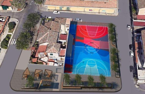 Il cuore dell’intervento sarà un campo polivalente di 15×28 metri, realizzato in resina sintetica multistrato ad alta resistenza e decorato con elementi grafici ispirati alla street art urbana. Sarà adatto a basket, calcetto e volley, e sarà dotato di una tribunetta prefabbricata per accogliere il pubblico.