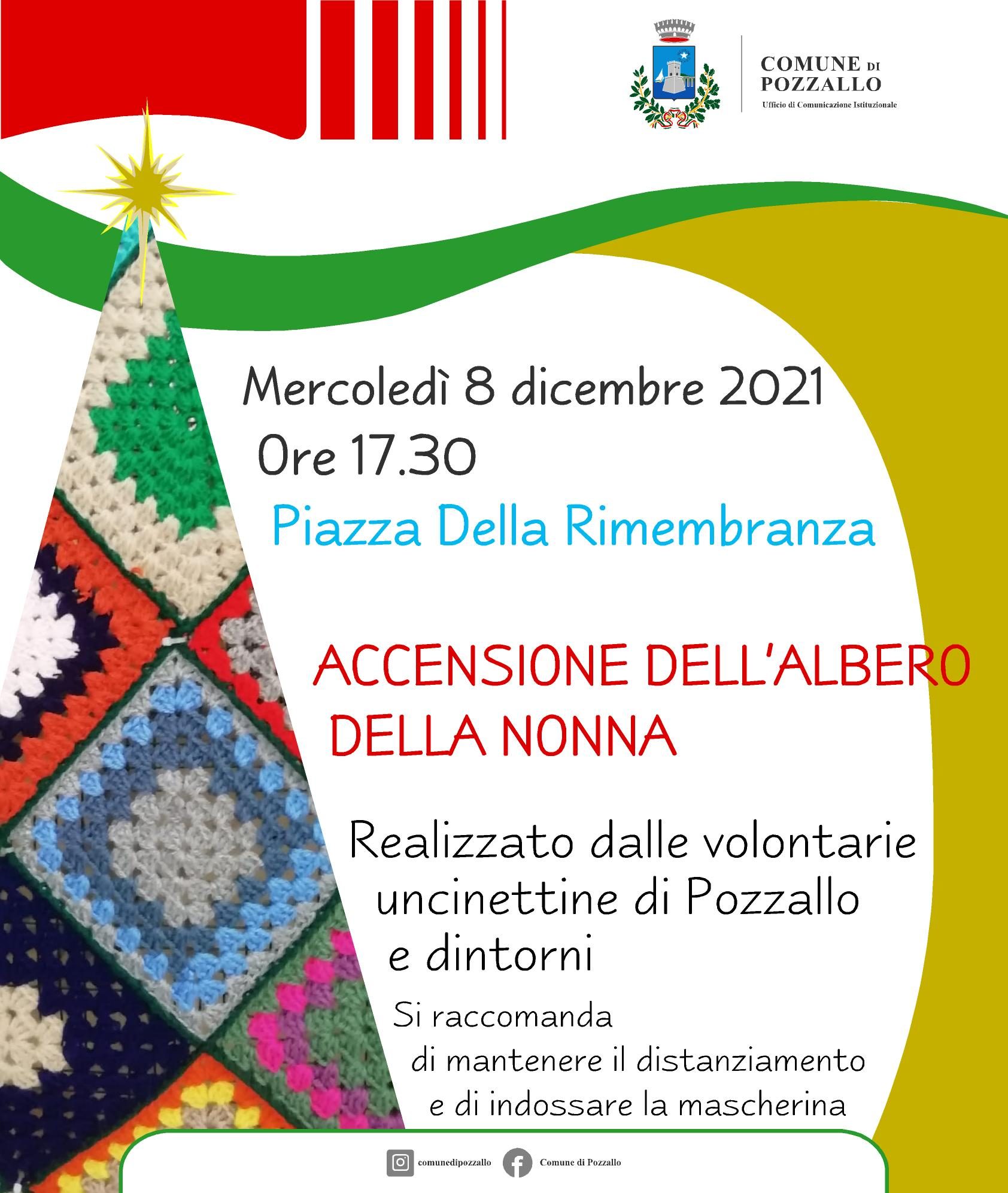 La novità degli addobbi natalizi di quest’anno a Pozzallo è “l’albero della nonna” che colora riccamente Piazza delle Rimembranze. Frutto della creatività delle volontarie del gruppo “Uncinettine” di Pozzallo e dintorni, l’albero alto circa sei metri è composto da 1.200 formelle di lana, interamente ottenute dal riciclo di vecchi maglioni e da altri manufatti altrimenti inutilizzabili.