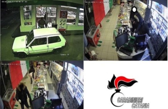 - intorno alle 23:12 del 23 marzo, ancora un furto all’interno di una macelleria di via Giuseppe Garibaldi ad Aci Bonaccorsi dove si impossessarono dei 700 euro contenuti nella cassa e in sequenza, intorno alle 23:30, frantumare un’altra vetrata per accedere all’interno di una pizzicheria, ubicata in via Petralia ad Aci Catena, per impossessarsi dei 40 euro contenuti nel registratore di cassa, fuggendo a bordo di un’altra Fiat Panda risultata rubata precedentemente ad Aci Catena.