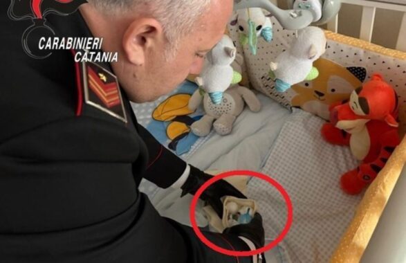 Durante il nuovo controllo, l’uomo ha inizialmente mostrato apparente tranquillità, cambiando improvvisamente atteggiamento quando i Carabinieri si sono avvicinati alla culla della figlia di pochi mesi, in quel momento vuota.
