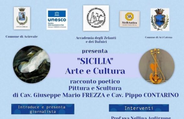 Nell’ambito del 79° anniversario dell’Autonomia Siciliana, il 15 maggio alle ore 18,30, ospitata presso il Palazzo di Città di Acireale, Sala Zelantea, verrà inaugurata la mostra “Sicilia. Arte e Cultura” racconto poetico Pittura e Scultura di Cav. Giuseppe Mario Frezza e Cav. Pippo Contarino.