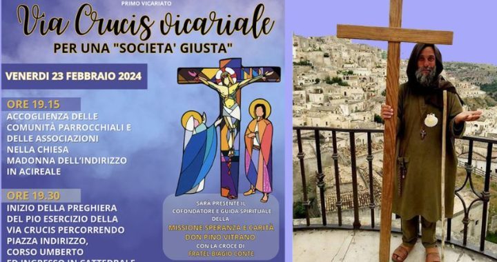 Occasione, quella della via crucis vicariale, per riflettere sul senso di comunità e sulla necessità della pace, come punto focale nella vita di ogni società civile. La croce, che sarà portata in processione, sarà quella che portò in pellegrinaggio lungo il corso della sua vita Fratel Biagio Conte.