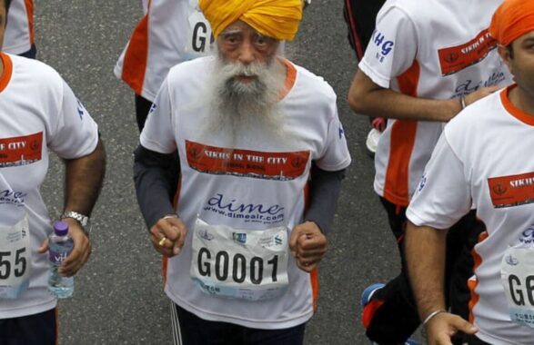 Fauja Singh era diventato famoso a livello internazionale per aver iniziato la carriera da maratoneta alla straordinaria età di 89 anni, ispirato da alcune trasmissioni televisive. Nato, secondo i suoi familiari, il 1 aprile 1911, aveva corso la sua prima maratona a Londra nel 2000, completandola in sei ore e 54 minuti.