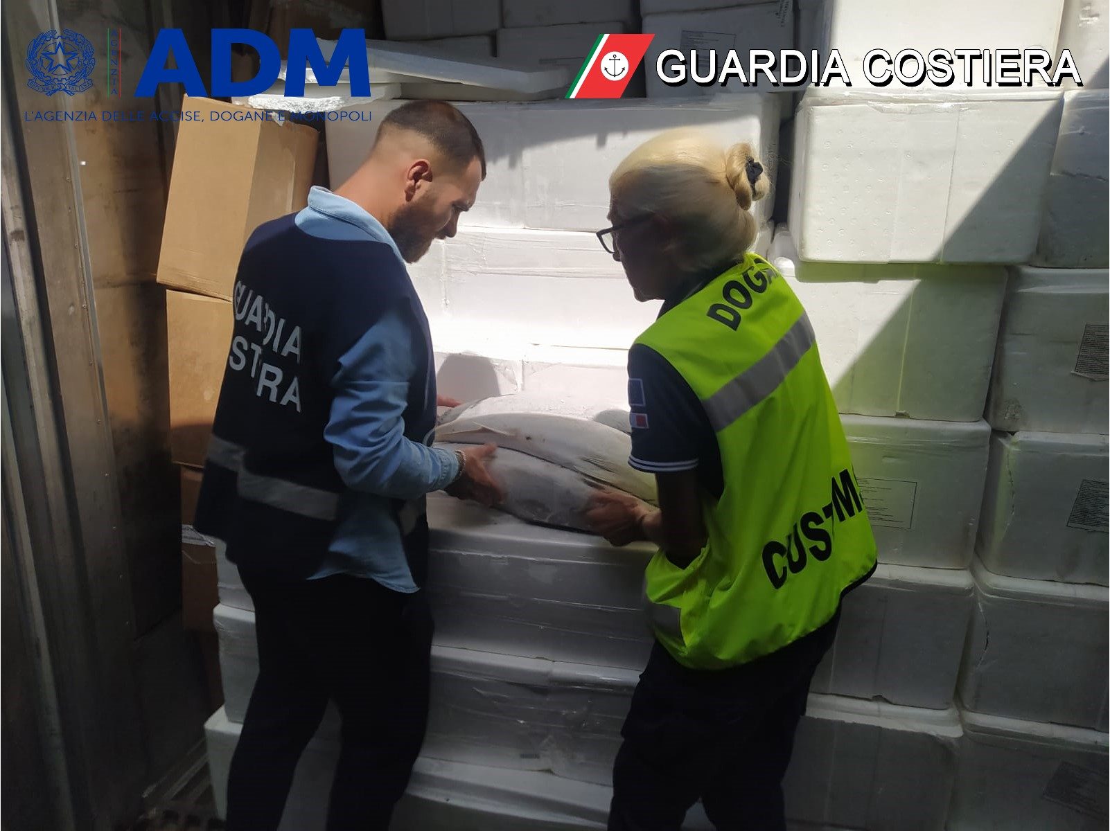 Al suo interno sono stati individuati circa due quintali della predetta specie non corrispondenti alla certificazione esibita dal rappresentante dell’importatore. Le informazioni presenti sulla documentazione attestavano infatti che la produzione e il congelamento di parte del pescato era avvenuto in data antecedente a quella di cattura come indicato nella certificazione esibita. Altri colli, inoltre, non recavano alcuna indicazione su identità e provenienza.
