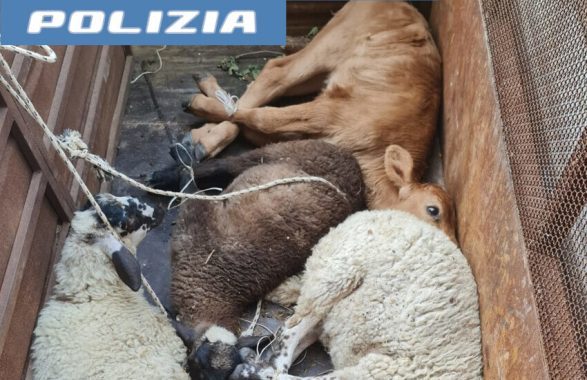 Il soggetto viaggiava spedito per fare rientro a Tortorici, alla guida di un furgone cassonato che è stato fermato e sottoposto a controllo di Polizia. All’interno, sono stati trovati tre agnellini di circa quattro mesi e un vitellino di appena dieci giorni, tutti in un evidente stato di particolare sofferenza, con le zampe legate, riversi sul pianale del veicolo, in uno spazio angusto, senza alcuna forma di aerazione, con un caldo asfissiante.