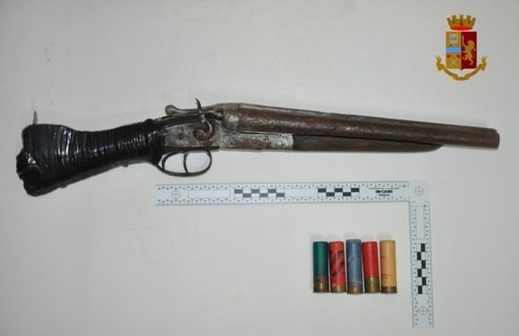 Dopo diversi servizi di appostamento e osservazione, il personale operante è riuscito ad identificare esattamente la persona segnalata e il suo domicilio e ha proceduto quindi ad effettuarne la perquisizione alla ricerca di armi. L’attività di Polizia ha consentito di rinvenire un fucile doppietta calibro 16 a canne mozze e il calcio tagliato, cinque cartucce, anch’esse calibro 16.