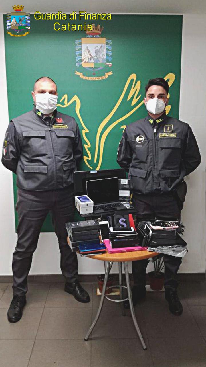 I militari della Guardia di Finanza del Comando Provinciale di Catania, nell’ambito dei servizi di vigilanza sulle attività transfrontaliere eseguiti in collaborazione con il personale della Sezione Operativa Territoriale dell’Agenzia Dogane e Monopoli di Catania, all’interno dell’aerostazione di Catania hanno sottoposto a sequestro numerosi smartphone, notebook e tablet per valore complessivo di circa 30.000 euro, trasportati da un cittadino senegalese residente a Catania.