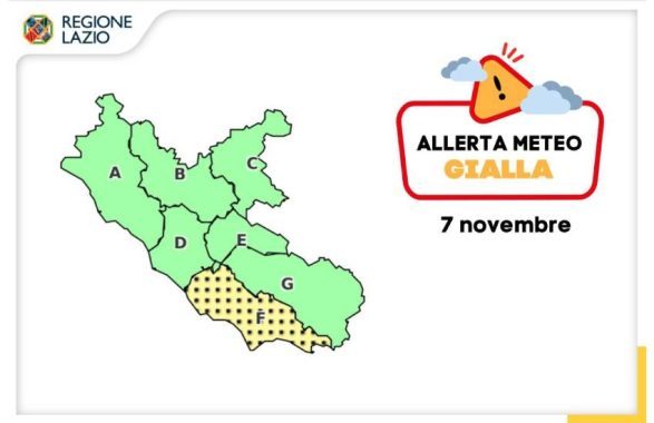 La Direzione emergenza, protezione civile e NUE 112 della Regione Lazio ha emesso un’allerta gialla valida dal pomeriggio di oggi, 7 novembre 2024, e per le successive 24-30 ore.