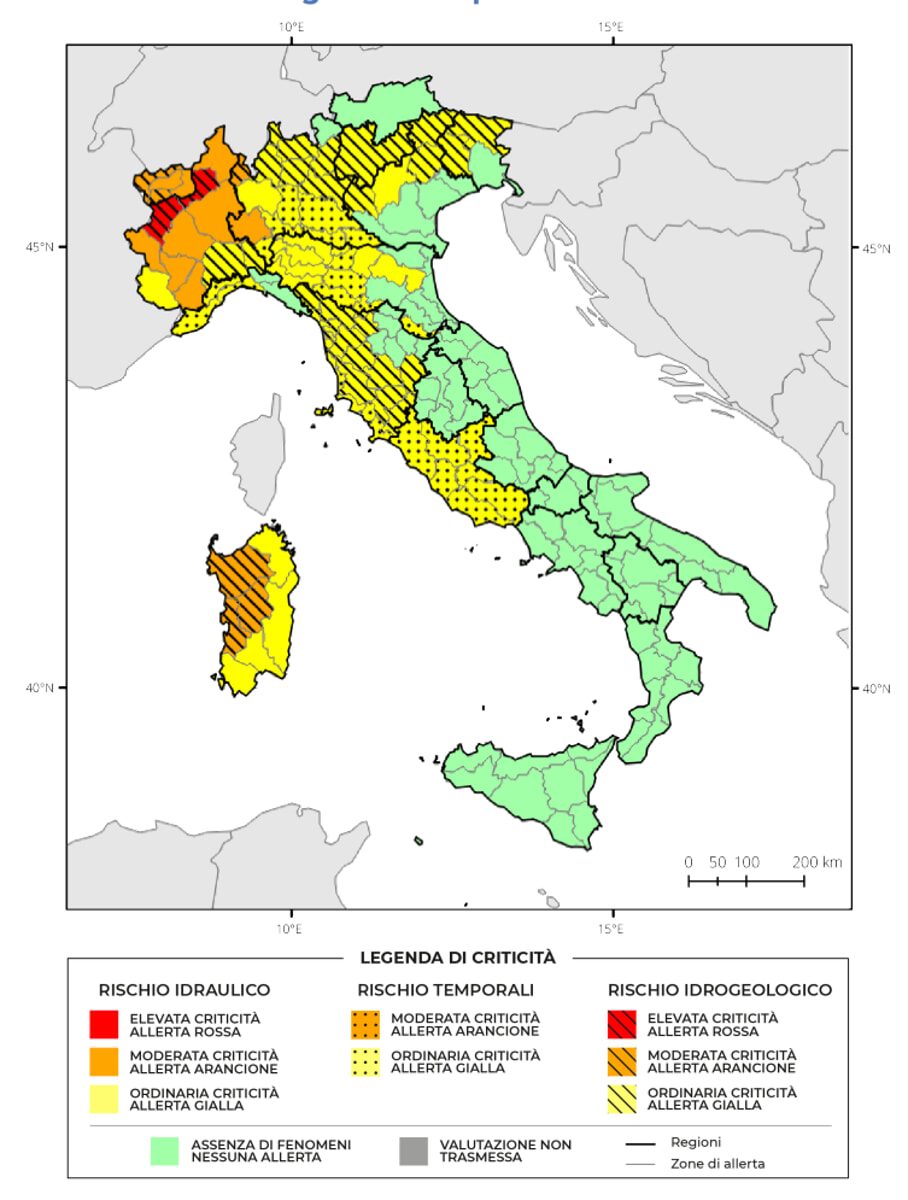 - Allerta gialla per Lazio, Trento, Friuli Venezia Giulia, Veneto, Piemonte, Emilia-Romagna, Liguria, Toscana e Sardegna