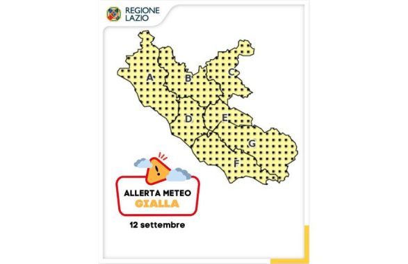La Direzione Emergenza, Protezione Civile e NUE 112 della Regione Lazio ha emesso un’allerta meteo gialla per la giornata di domani, giovedì 12 settembre 2024, con una durata stimata di 18-24 ore.