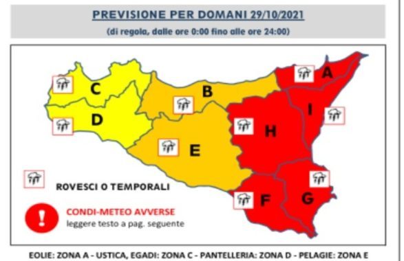 A seguito della promulgazione dell’allerta meteo rossa per venerdì 29 Ottobre 2021, gli Istituti Scolastici di ogni ordine e grado all’interno della Provincia di Ragusa rimarranno chiusi.