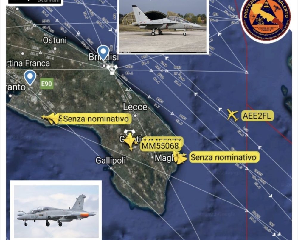 Aerei di guerra in volo sul Salento e allerta tra i cittadini? La Protezione Civile salentina specifica: “Sul locale aeroporto di Galatina già dal 1945 vi è attività di scuola volo basico iniziale e ogni giorno effettuano voli di addestramento. Anzi per la verità questi voli di addestramento si effettuavano già dapprima sulla base (ora chiusa) di Leverano poi spostata all’attuale base del 61° stormo dell’Aeronautica Militare. Comprendiamo benissimo il periodo difficile che stiamo vivendo ma non c’è nulla di cui preoccuparsi. C’è da dire che sul Salento passano più aerovie o rotte obbligate per qualsiasi volo di linea o militare”.