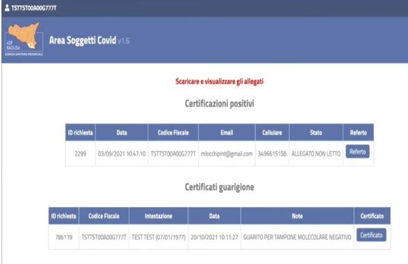 Nell’”Area soggetti covid” è possibile scaricare anche i certificati di inizio isolamento e di guarigione. Durante la registrazione verrà inviata una mail in cui si comunicano le credenziali e la modalità di accesso successive. Per eventuali problematiche sugli accessi (anche per ricevere nuovamente l’SMS) si può mandare una mail a: team.helpcittadino.vaccini@asp.rg.it.