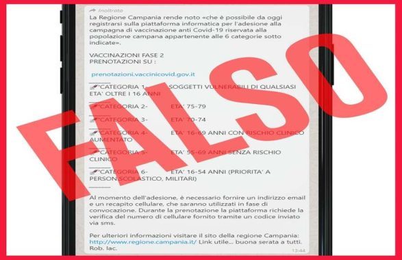 Per evitare FAKE NEWS e rimanere sempre costantemente e correttamente aggiornati sulla campagna vaccinale e sulle misure di contrasto alla pandemia, vi invitiamo a consultare i siti e i profili ufficiali della Regione Campania e dell’Unità di Crisi”.