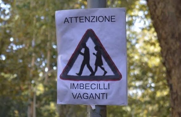 A San Paolo, in via Costantino a Roma, è comparso un cartello che ha fatto sorridere molti passanti. La scritta è chiara e provocatoria: “Attenzione, imbecilli vaganti”. Sotto, il disegno di due ragazzi piegati sul telefono, come succede spesso per strada. Un messaggio ironico, nato per far notare un problema quotidiano: chi cammina senza guardare perché incollato allo smartphone.
