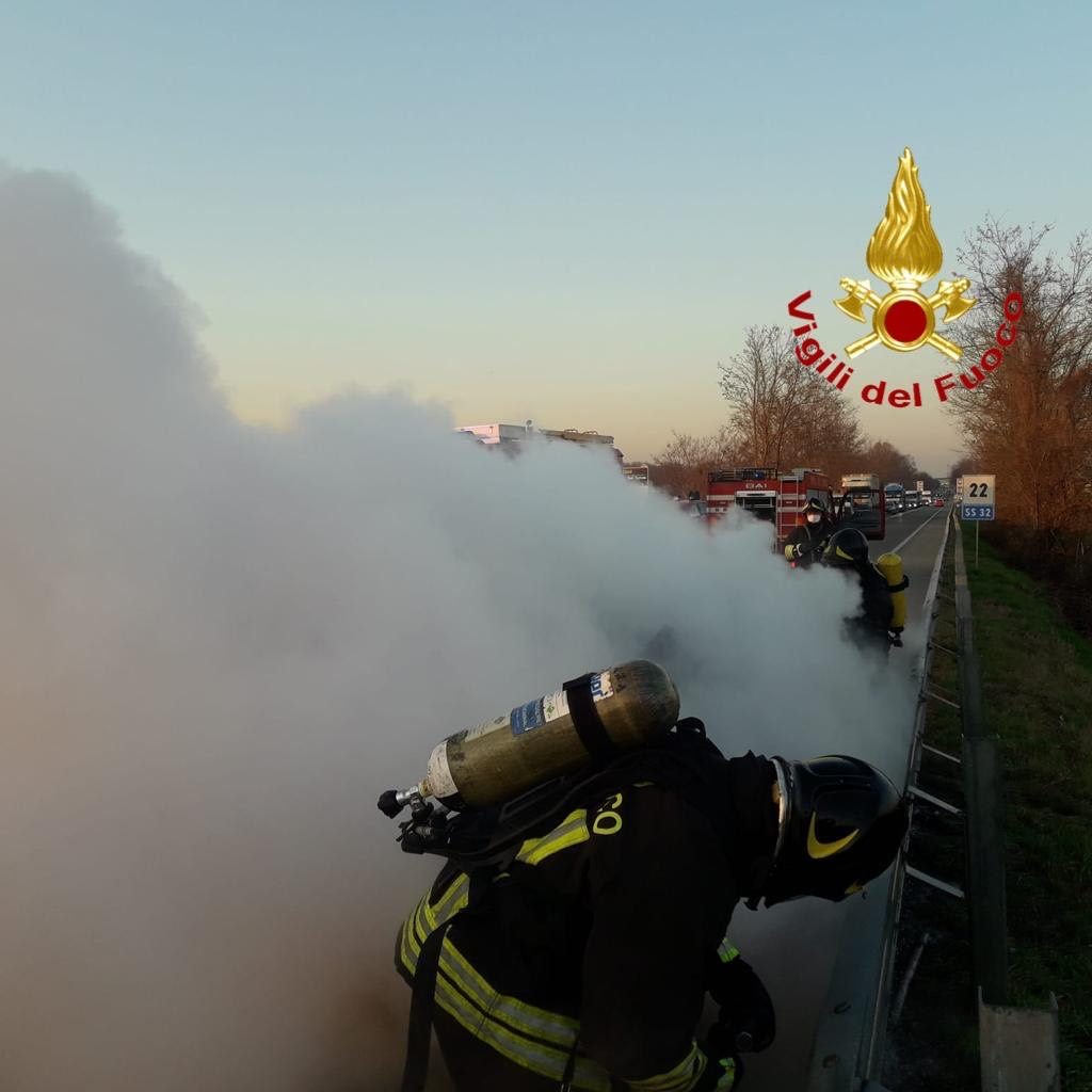 I vigili del fuoco di Arona con il supporto dei volontari di Oleggio, sono intervenuti sulla SS 32 per incendio auto tra Marano Ticino e Pombia. Subito giunti sul posto i pompieri hanno spento le fiamme e messo in sicurezza l’area coinvolta dall’incendio. La SS rimaneva chiusa durante le operazioni di spegnimento, successivamente a senso alternato fino alla rimozione del mezzo incendiato. Sul posto anche la polizia locale di Pombia per veicolare il traffico