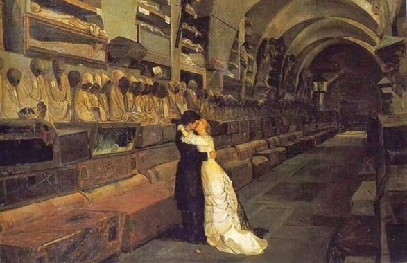 Cappuccini di Palermo: ”Amore e Morte” del pittore catanese Calcedonio Reina.