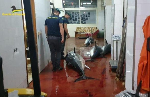 I Finanzieri durante il controllo nel deposito di pesce (completo di celle frigorifere) hanno rinvenuto 18 esemplari di tonno rosso pinna blu (Thunnus thynnus) privi del documento di cattura (Bluefin Tuna Catch Document, un modello con cui viene garantita la tracciabilità delle diverse fasi della filiera di sfruttamento di questa specie ittica, dalla sua cattura alla successiva commercializzazione), destinati alla vendita nei principali mercati ittici delle provincie di Palermo e Trapani.