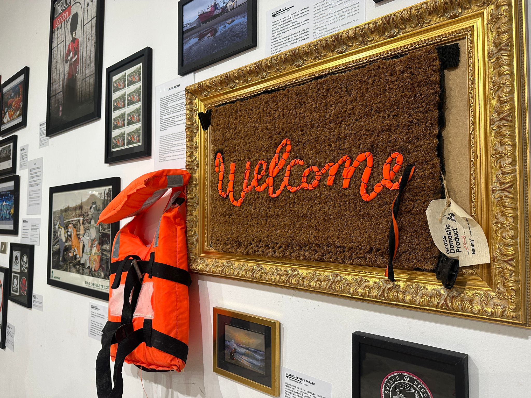Uno zerbino realizzato con strisce di giubbotti di salvataggio dei migranti, le immagini della più recente opera londinese di Banksy cancellata e poi riapparsa come un’ombra, fotografie che raccontano la guerra in Ucraina attraverso il suo sguardo, uno scatto per una campagna Greenpeace contro la deforestazione mai diffuso perché bloccato dalla Disney, e perfino i Tre Re Magi fermati a un controllo di sicurezza.
