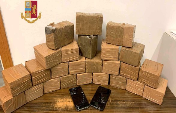 La Polizia Stradale ha sequestrato 25 kg di cannabis contenuti in altrettanti involucri cubici contenuti in un’auto fermata al casello autostradale di Bari Nord sull’autostrada