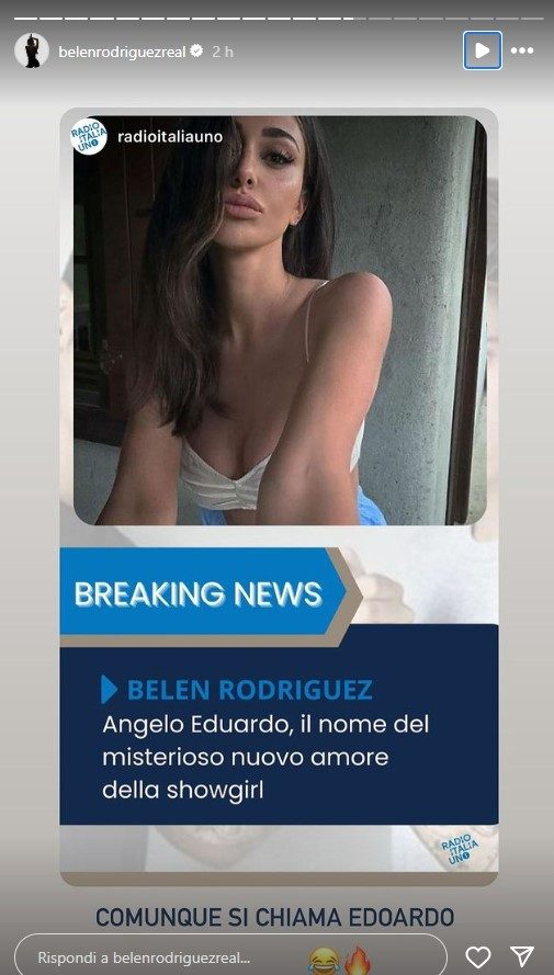 La stessa Belen ha quasi confermato la sua nuova love story quando, riprendendo il titolo di un giornale che chiamava Angelo Eduardo il suo misterioso fidanzato, lo ha corretto scrivendo “Comunque si chiama Edoardo”.