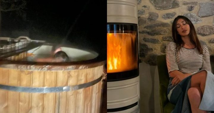 Tra le tante foto non è sfuggita ai fan una particolarmente bollente: quella in cui Belen e Angelo sono immersi in una vasca esterna alla baita, una sorta di tinozza di legno. In realtà i volti non si vedono, ma è facile immaginare che si tratta proprio dei due piccioncini avvolti dal vapore acqueo della temperatura bollente dell’acqua. Non a caso subito dopo tra gli scatti compare proprio la showgirl argentina rilassata di fianco alla stufa.