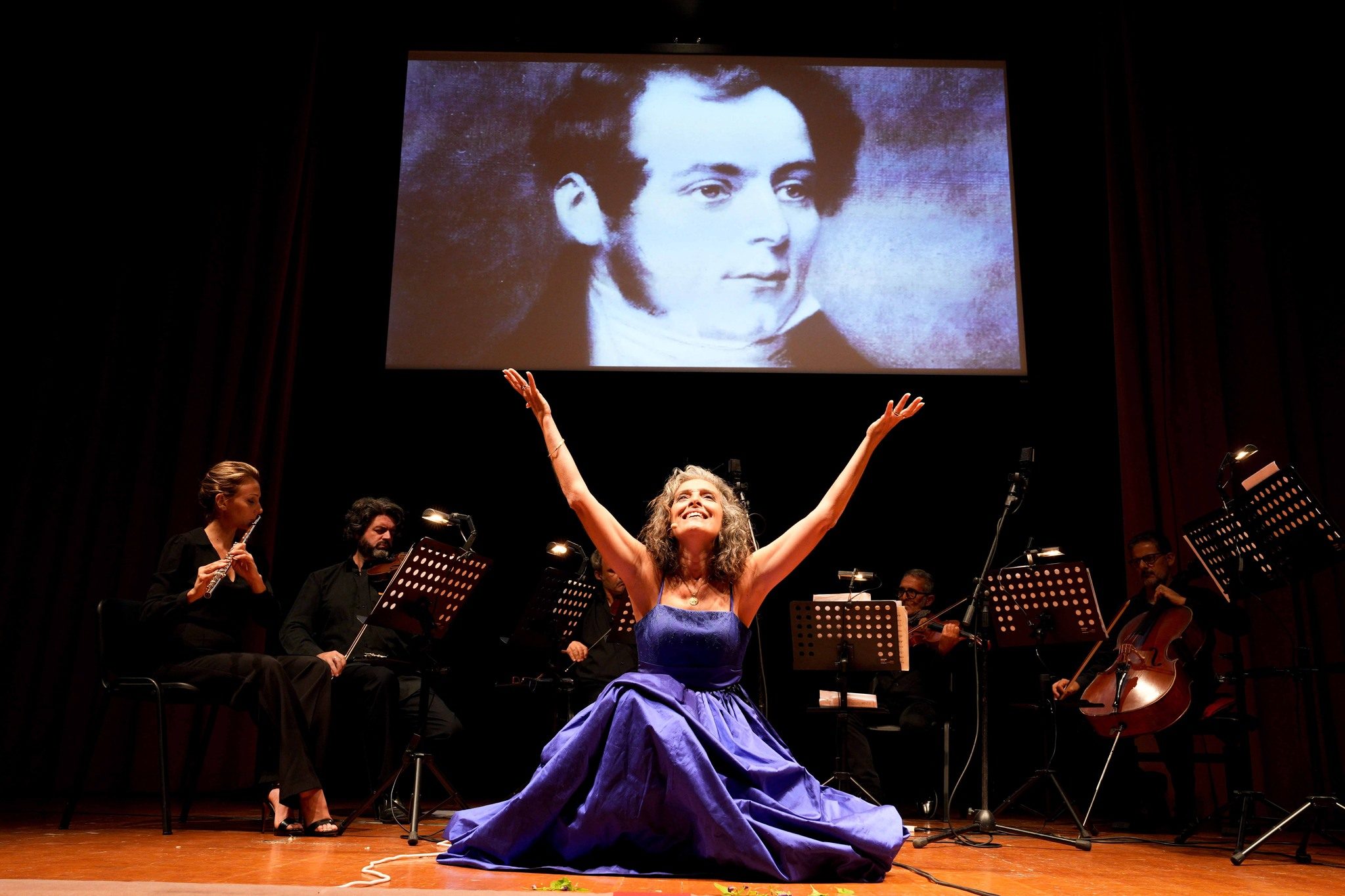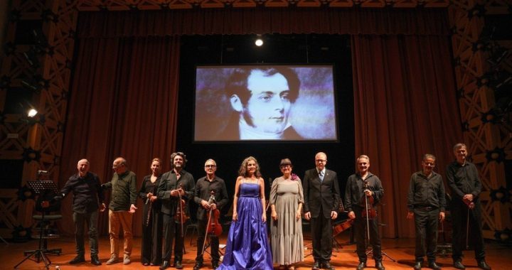 Ancora un grande successo al Teatro Sangiorgi per “Bellini nella musica delle carrozze”, spettacolo di note e prosa, tratto dal romanzo breve di Lina Maria Ugolini, con l’affascinante narrazione affidata all’attrice Anna Passanisi. I maestri dell’ensemble Sikelikos, uniti al flauto di Laura Farneti, hanno eseguito musiche originali ispirate al genio di Bellini firmate per l’occasione dai compositori Joe Schittino, Giovanni Ferrauto, Giuseppe Emmanuele, affiancate a citazioni di repertorio (Casella, Tartini e lo stesso Bellini) evocate a sostenere l’intimità della voce narrante. (Foto di Giacomo Orlando).