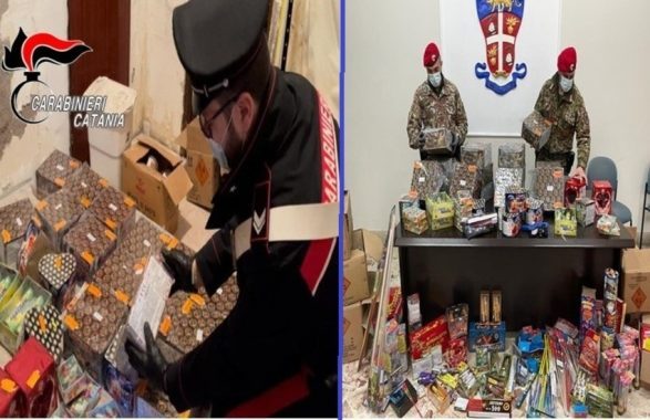 Con l’approssimarsi della vigilia del Capodanno, su impulso del Comando Provinciale di Catania, sono stati intensificati i servizi mirati alla vigilanza sulla produzione, commercio e detenzione di artifizi pirotecnici ed in particolare a Biancavilla dove, a riscontro di un’attività info investigativa, sono state effettuate alcune perquisizioni che hanno consentito di rinvenire un consistente quantitativo di artifizi pirotecnici.