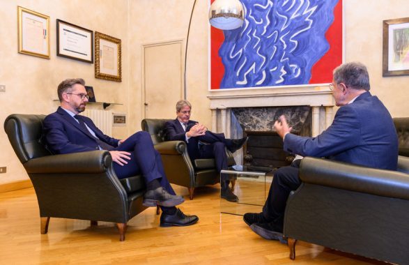 L’incontro cordiale si è tenuto nell’ufficio del sindaco a margine della conferenza “La nuova Europa: profili economici” cui ha partecipato Paolo Gentiloni nel pomeriggio a Palazzo d’Accursio. Era presente anche il prof. Romano Prodi presidente della Fondazione per la Collaborazione tra i Popoli, organizzatrice della conferenza.
