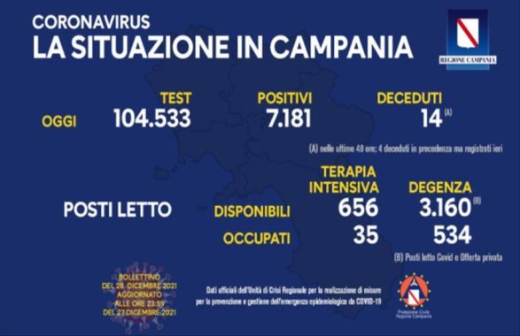 La Regione Campania ha diramato il consueto aggiornamento sulla situazione Covid-19 in Campania: oggi si sono conteggiati 7.181 casi di positività. Un record negativo, ma bisogna considerare che anche il numero di test effettuati (104.533) è altissimo. 18 purtroppo i decessi. Altro dato preoccupante riguarda le ospedalizzazioni, che continuano ad aumentare in modo preoccupante.