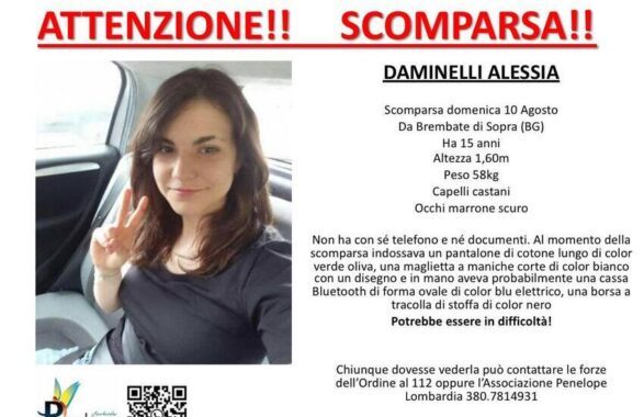Alessia Daminelli, 15 anni, è scomparsa dal 10 agosto nel comune di Brembate di Sopra (Bergamo). La famiglia ha lanciato un appello urgente tramite i social e l’Associazione Penelope Lombardia, condividendo la sua foto e una descrizione dettagliata.