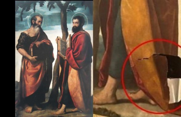 La donna è inciampata ed è franata involontariamente contro il quadro che era stato esposto all’ingresso di una delle sezioni della mostra. Il dipinto, realizzato a cavallo tra il 1522 e il 1524, ha riportato uno squarcio sulla parte bassa, un danno di svariate migliaia di euro. L’opera, un oggetto molto utilizzato nel ‘500 in occasione delle processioni, presenta una particolarità e cioè il fatto che ci sono due raffigurazioni sui due lati: da un lato sono raffigurati due santi ignoti, mentre sull’altro lato l’immagine della Vergine Maria.