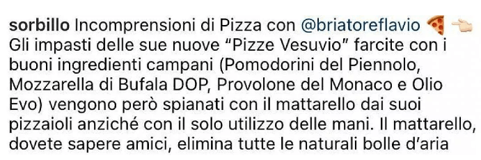 Da tempo, un conflitto su piattaforme sociali infuria tra Flavio Briatore e Gino Sorbillo. L’ex dirigente della Formula 1 critica il secondo per la sua preferenza per la pizza con l’ananas, mentre il pizzaiolo e imprenditore replica criticando l’impiego della parola “Vesuvio” in una proposta della catena Crazy Pizza, definendola una forma di “appropriazione culturale nei confronti della tradizione napoletana”.