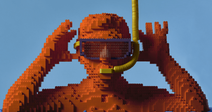 La mostra è un inno alla gioia: un mondo colorato e fantastico, capace di coinvolgere e far sognare grandi e piccini. Simbolo di Brick Art “SPLASH”, un simpatico sub di mattoncini rossi che spunta dall’acqua, pronto a giocare col pubblico.