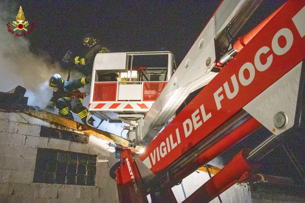 E’ stato necessario l’utilizzo della piattaforma tridimensionale –cestello- per consentire ai pompieri di lavorare in sicurezza e rimuovere le parti pericolanti. Non risultano persone coinvolte. Si stanno valutando le cause del rogo che ha reso la struttura inagibile.