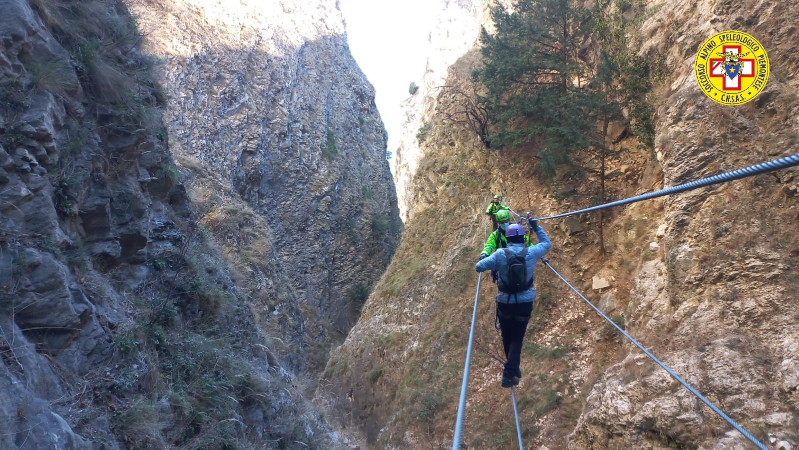 Intervento dei tecnici del Soccorso Alpino e Speleologico Piemontese questo pomeriggio nell’Orrido di Foresto, comune di Bussoleno (To), per un uomo caduto nell’attraversamento di un ponte tibetano mentre percorreva la via ferrata. Sul posto è stata inviata una squadra a terra che lo ha raggiunto, messo in sicurezza e condotto a valle illeso.