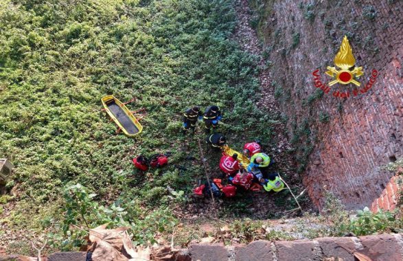 Una persona è caduta nel fossato del castello dal muretto superiore adiacente a viale 4 novembre.