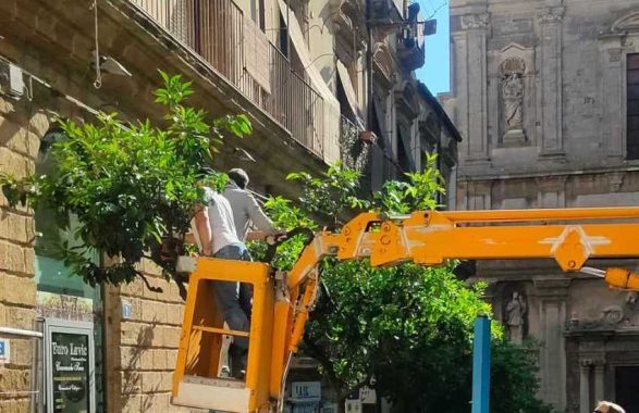 E’ in corso da stamani, da parte del personale del Servizio Verde pubblico (responsabile Salvo Petta), la potatura straordinaria, con isolamento e distruzione del materiale potato, degli alberi di arancio amaro che si trovano nella via Discesa Collegio. Questa attività interesserà pure, oggi e nei prossimi giorni, le piante che si trovano in Largo San Domenico, all’ingresso laterale dello stadio “Agesilao Greco” e le aiuole in zona Balatazze.