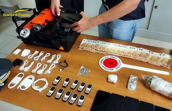 L’analisi di rischio operata congiuntamente dalle Fiamme Gialle di Catania e Caltanissetta evidenziava talune incongruenze nelle modalità di trasferimento seguite dai due soggetti per arrivare nella città di Caltanissetta. Il successivo controllo effettuato nelle immediate vicinanze dell’Istituto penitenziario di Caltanissetta consentiva di rinvenire uno zaino appositamente confezionato per essere trasportato da drone contenente 10 telefoni cellulari di piccolissime dimensioni, cc.dd. micro cellulari, ulteriori 2 smartphone, nonché 12 schede SIM e gli accessori necessari per la ricarica degli stessi oltre a 100 grammi di marijuana e oltre 150 grammi di hashish. Sono stati inoltre sequestrati i 4 smartphone nella disponibilità dei due arrestati.