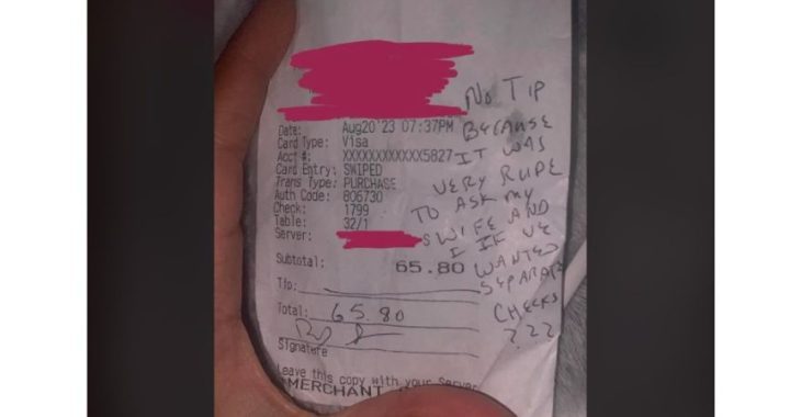 La coppia non ha affatto gradito quella domanda, bollandola come maleducata, e lo ha ribadito scrivendo a penna sullo scontrino le seguenti parole: “Nessuna mancia per te perché è stato molto scortese chiedere a me e a mia moglie se volevamo dividere il conto”.