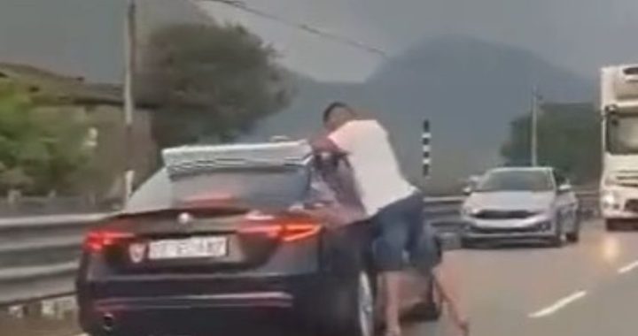 Dopo questo momento si è scatenata la follia: l’automobilista, invece di ringraziare i carabinieri che si erano fermati per dare il loro aiuto, ha iniziato a dare pugni e calci contro la volante, raggiunta anche da alcune pietre.