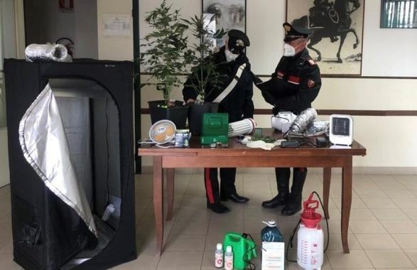 Importante operazione dei carabinieri lo scorso 18 febbraio 2022 a Terracina. I militari della locale Stazione traevano in arresto, nella flagranza di reato un ventenne del luogo. “Si accertava – scrivono dal comando provinciale – che il predetto aveva allestito nel garage della sua abitazione una mini serra artigianale in cui stava coltivando 3 piante di marijuana opportunamente occultate e alimentate da impianti di aerazione ed elettrico efficacemente realizzati. I militari operanti rinvenivano anche materiale per il confezionamento della citata sostanza stupefacente, il tutto posto sotto sequestro. Dall’esame successivo effettuato sulle piantine è stato accertato che le stesse avrebbero permesso di ricavare 450 dosi. Il giovane, d’intesa con l’A.G. di Latina è stato condotto presso la propria abitazione in regime degli arresti domiciliari. Nella mattinata odierna è stato giudicato con il rito direttissimo e, dopo la convalida dell’arresto, l’udienza è stata rinviata nella metà del prossimo mese di marzo”.
