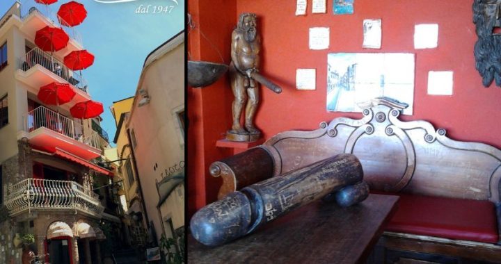 Castelmola, benvenuti al bar Turrisi, decorato con sculture falliche di ogni dimensione – FOTO