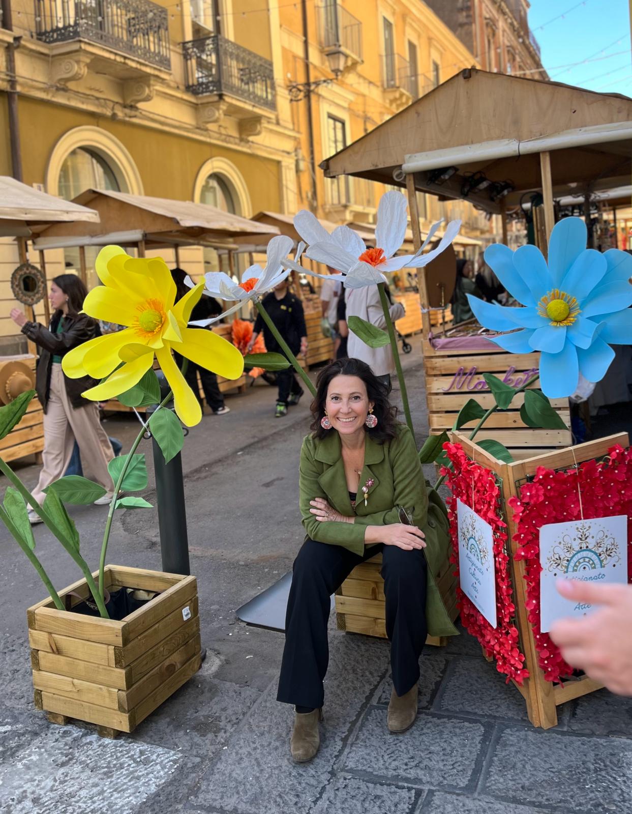 La scalinata Alessi diventa passerella di moda e vetrina d’arte. Lungo la gradinata saranno posizionati dei pezzi unici, delle sculture di ceramica artistica della scuola Nenè. Apre l’evento la sfilata di abiti di PINANANNULI. Capi di abbigliamento realizzati e recuperati da antichi corredi siciliani, che grazie all’originale estro artistico della stilista diventano abiti di alta sartoria. Dodici modelle che indosseranno i gioielli di Fenomeni Lavici, (monili che combinano un design glamour e di tendenza con l’ottima qualità della lavorazione), celebreranno l’eleganza e la bellezza della Sicilia nella storica scalinata catanese, allestita per l’occasione con luci e rosoni che rimandano alla tradizione delle luminarie siciliane.