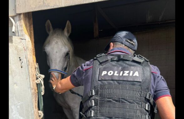 Nel corso dello stesso controllo, gli agenti hanno notato la presenza di un cavallo. Approfondendo la verifica, sono stati scoperti altri quattro cavalli rinchiusi in una struttura di lamiera, priva delle condizioni minime di benessere animale.