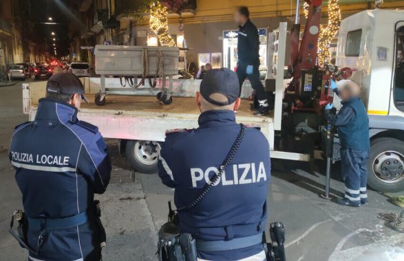 Per rimuoverlo dalla strada, inoltre, si è reso inevitabile il ricorso ad un carro attrezzi perché particolarmente pesante e ancora rovente. Al riguardo, la Polizia Locale ha provveduto a sanzionare il titolare sia per commercio, cottura e somministrazione di alimenti su area pubblica, con la carne posta in vendita in un banco frigo posto all’esterno del locale, come nel caso del braciere, sia per occupazione abusiva di suolo pubblico. Infatti, il titolare del ristorante ha pensato bene di ostruire il passaggio dei pedoni sul marciapiede, posizionando tavoli e sedie, triplicando arbitrariamente lo spazio autorizzato. Le sanzioni elevate ammontano ad oltre 1700 euro.